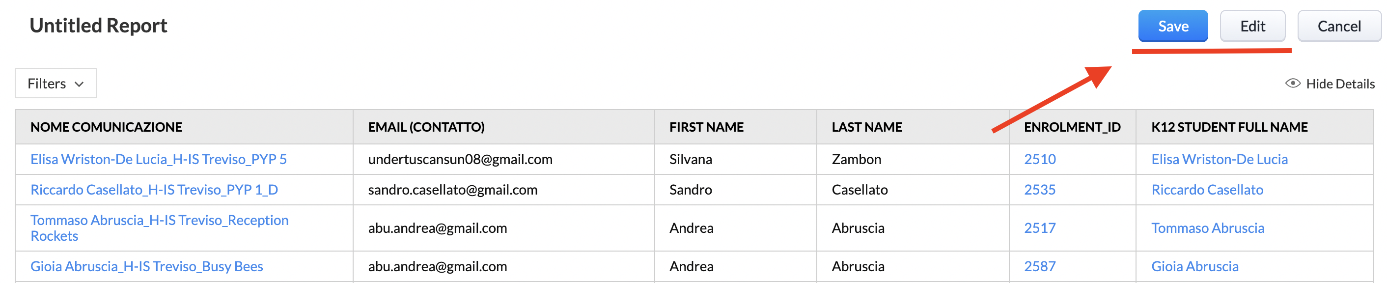Per salvare il report, premi il tasto “Save” in alto a destra.